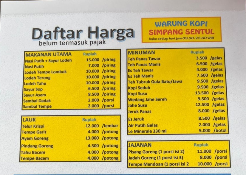 Introducing the Menu at WARUNG KOPI SIMPANG SENTUL